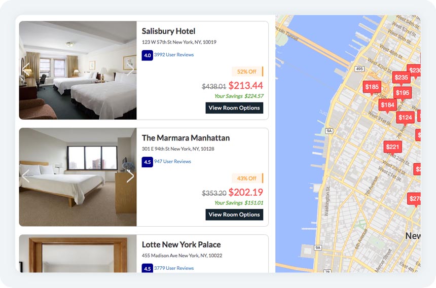 Search over 600,000 hotels to book travel for your next company retreat, client visit, or other type of business trip. You’ll be able to see how much you save off of retail hotel prices.